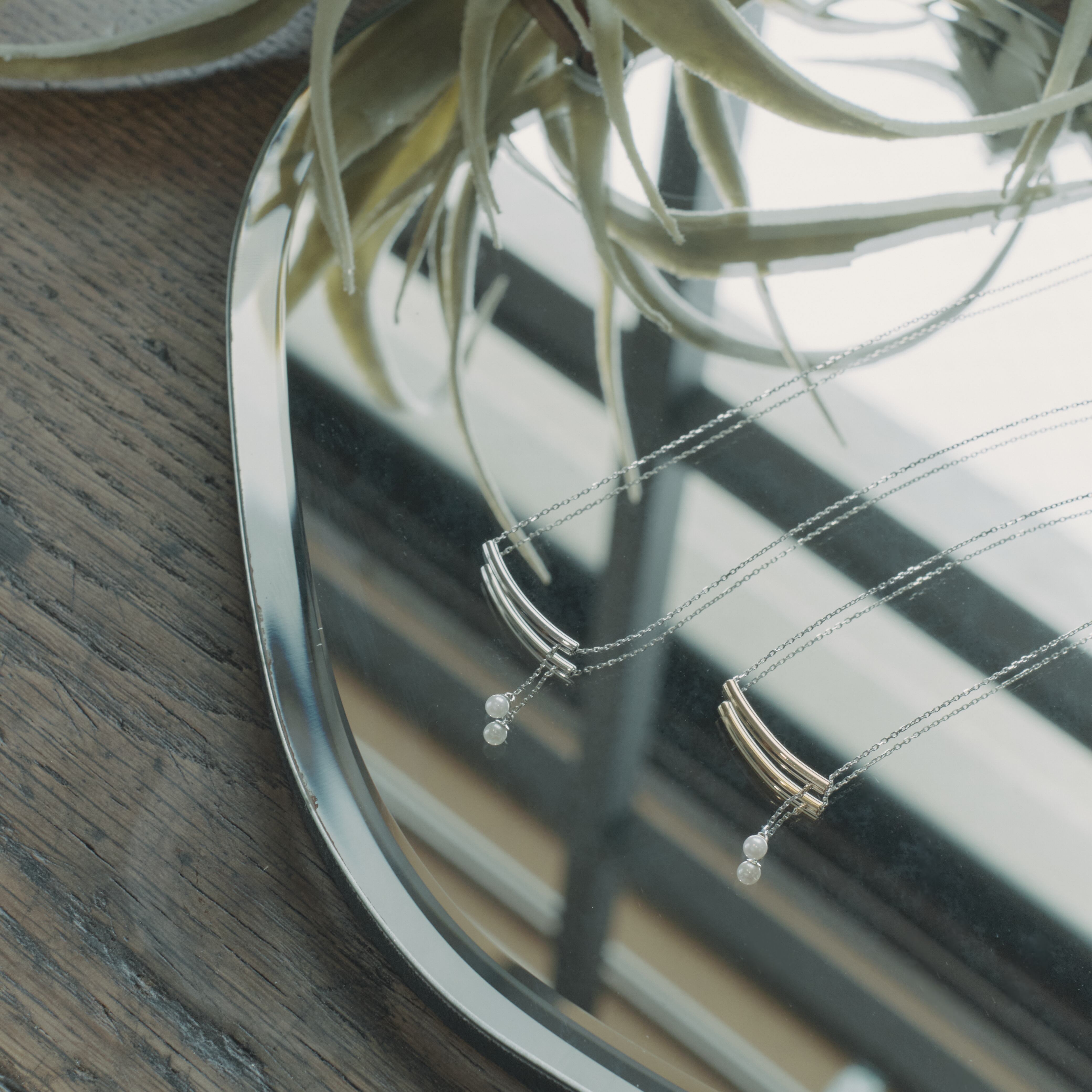 建築的な美しさを持つ“pipe-ピペ-”シリーズは、パイプ素材のシャープさと、繊細なディテールのバランスが絶妙なコレクション。日常に、静かな存在感を添えて。