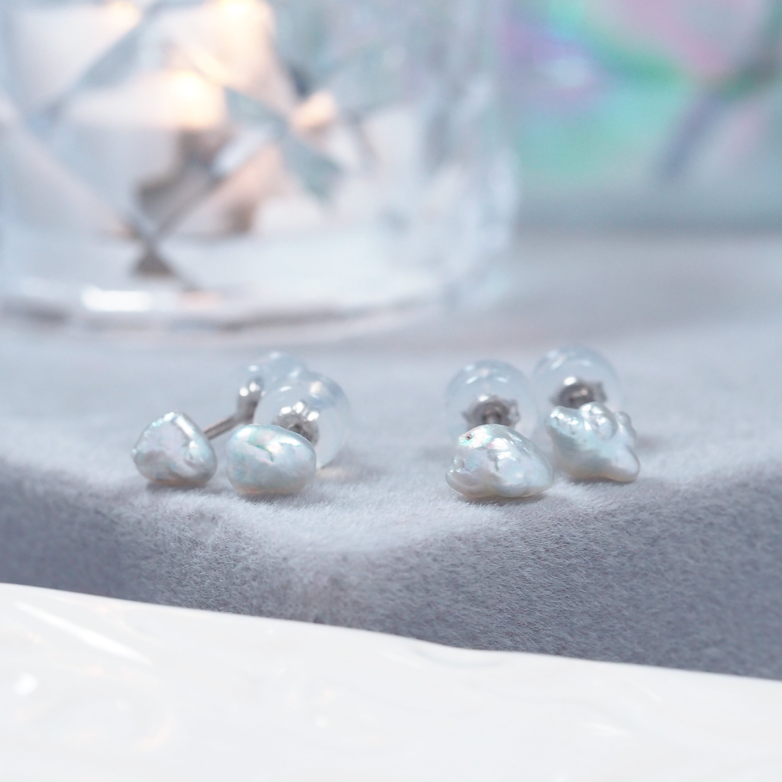 自然の造形がそのまま息づくケシパールをあしらったピアス。